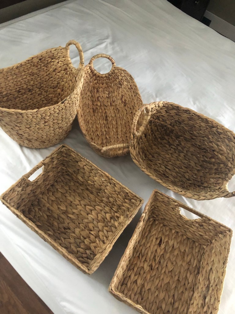 My first step was to head to Canadian Tire to pick up some wicker baskets for easy organization. I find having pretty baskets for organizing tends to motivate me to keep that space clean and organized.